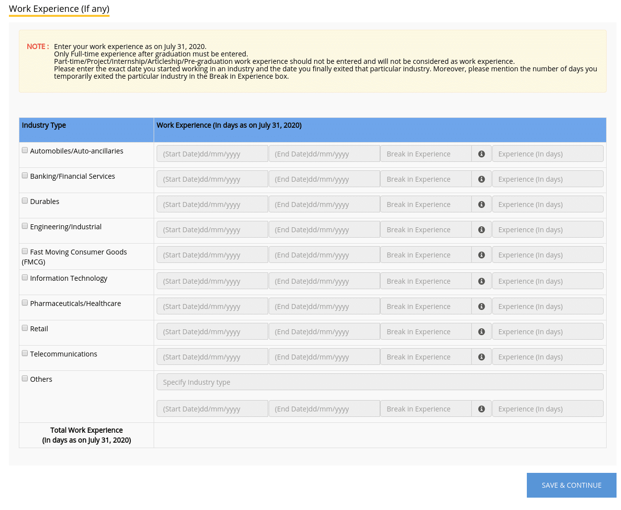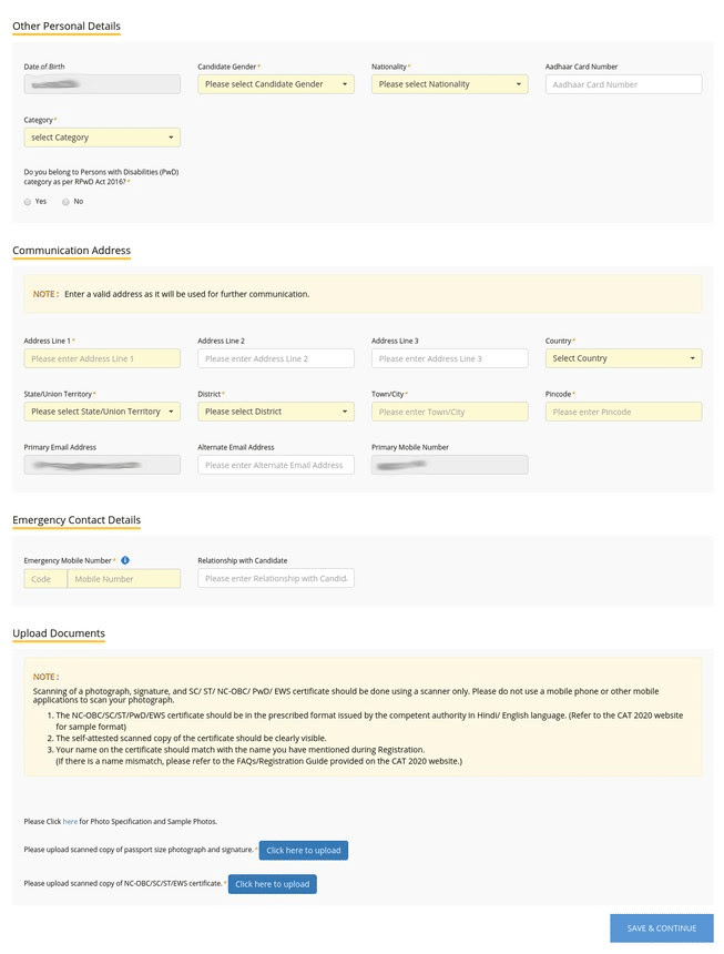 - Save & Continue: Click ‘Save & Continue’ after completing each section of the CAT Form to progress smoothly.