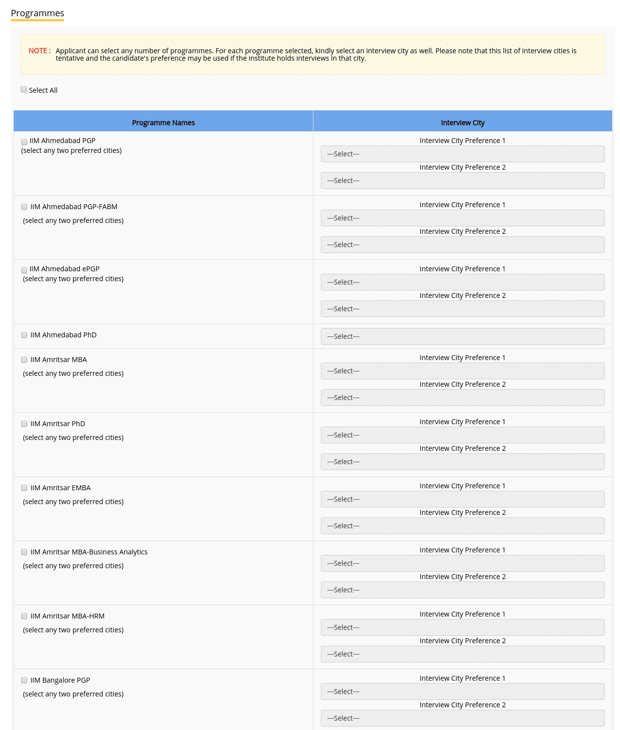 Step 9: Select Work Experience, IIM Programmes & Interview Cities