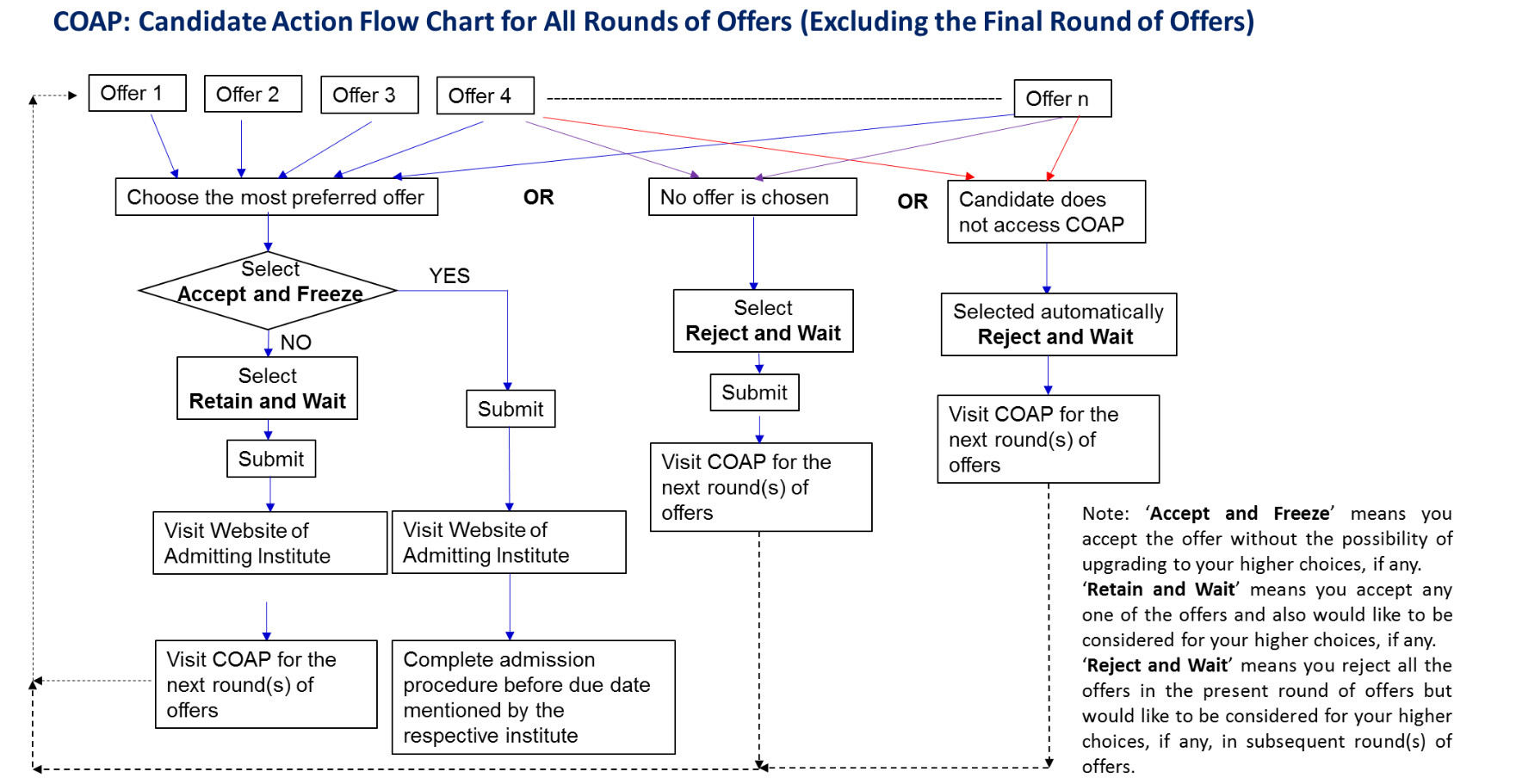 Round 5 is a Decisive Round. Therefore, the candidates will have only the ‘Accept and Freeze’ and ‘Reject’ options to select. - Additional Rounds A, B, C, D, and E are independent rounds, each treated like a Decisive Round. The candidates will have only the ‘Accept and Freeze’ and ‘Reject’ options in these rounds.