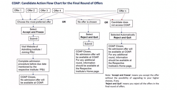 After positive registration, contenders will be able to retrieve information on suggestions made by the IITs where they have joined. All proffers are provided and labeled with the COAP registration number which is similar to the GATE registration number lacking subject code.
