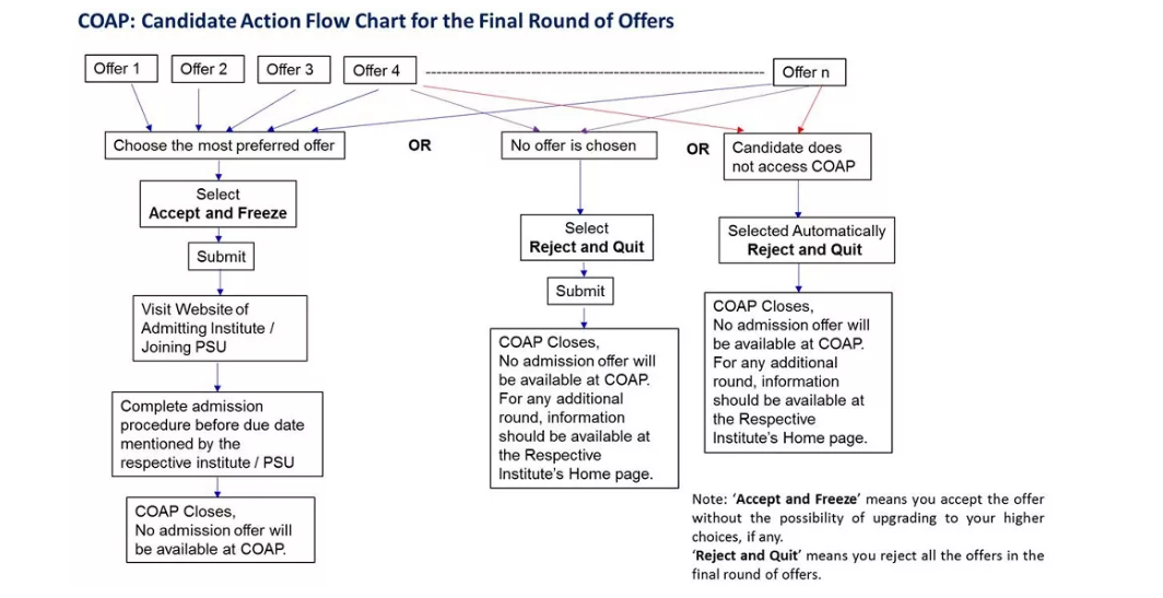 Once contenders are keen to accept the offer suggestions will be counted for elevation to higher first choices in the subsequent rounds. Such candidates must choose this option and go to a particular IIT Admission Portal to approve their admission.