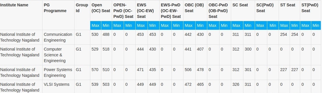 Previous years’ GATE Cut Off for NIT Nagaland