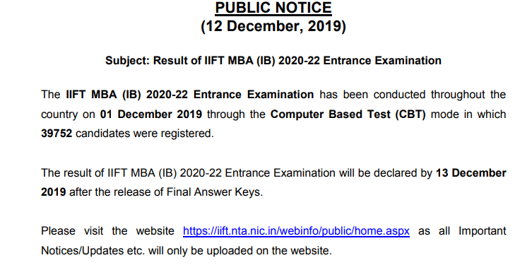 IIFT Result Notice Leave a Comment / By Sunil Kushwaha / 12 December 2019 Latest Applications Open 2024: Chandigarh University Parul University GD Goenka IIFT Result Notice