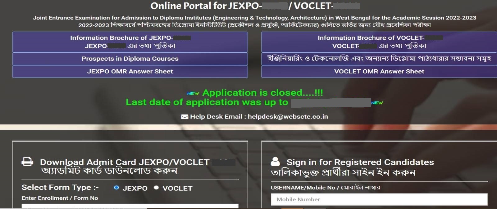 JEXPO (WB Polytechnic) 2024 Application Form has been Re-opened from 19th June – 8th July 2024. Online Application Form Last Date has been Extended till 31st May 2024. The Exam will be conducted for first-year Polytechnic courses. The Joint Entrance Examination for Polytechnic (JEXPO) 2024, also known as WB Polytechnic, is an entrance exam conducted by the West Bengal State Council of Technical Education for admission to first-year Polytechnic courses in the state.