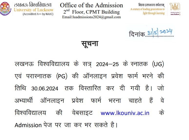 Lucknow University 2024 Exam Dates have been announced now. The Exam will be held on 11th – 18th July 2024 for the UG Course and the PG Course from July – August 2024. Lucknow University 2024 offered admission to various undergraduate & Post Graduate Courses.