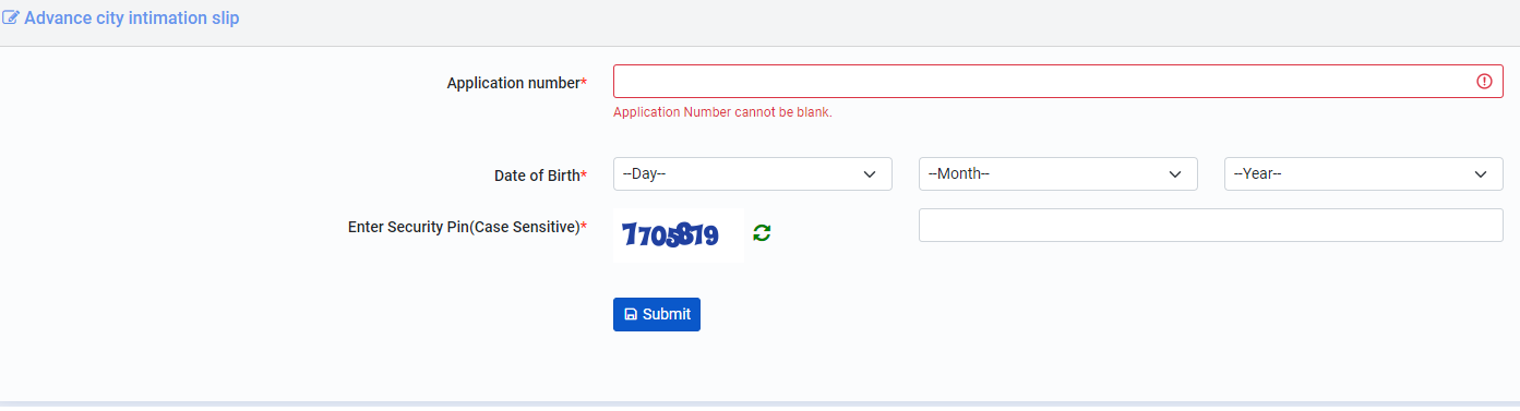 - Application Number: Candidates need to provide their unique application number, which was generated during the application submission process.