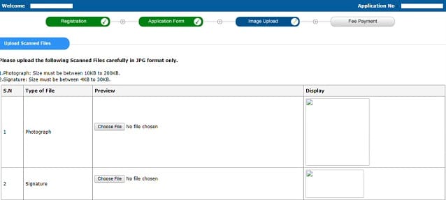Following that, applicants are required to upload their scanned images and signatures, adhering to the specifications outlined in the table below. Both the scanned images and signature files must be in JPEG format.